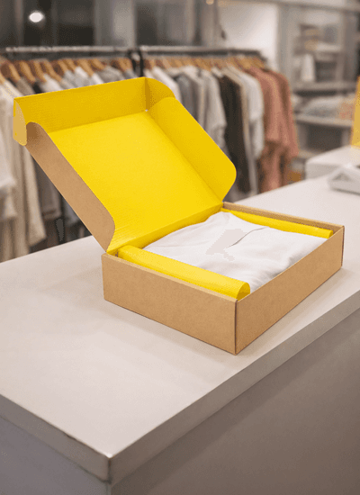 Embalagens em papel duplex ou triplex com corte e vinco.